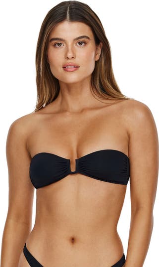 Embrace elegant style with the Midnight Bandeau Bikini Top. Designed with a supportive U wire insert, adjustable removable straps, and a secure back hook closure, it offers comfort and style in perfect balance. The smooth front lining completes this sleek black essential that pairs beautifully with our Midnight Bikini Bottoms. Bottoms sold separately.