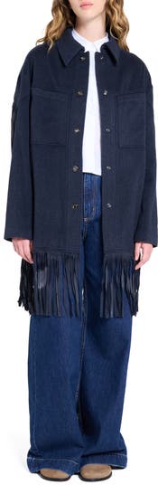Roll up with rugged luxury in a fringe finished jacket made from rich cashmere.