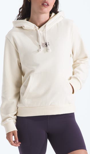 A cozy cotton-forward hoodie lays a couple of sweetly stitched blooms over the logo for an added touch of charm.