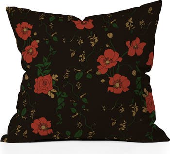 Roses bloom against a dark background in this striking accent pillow.