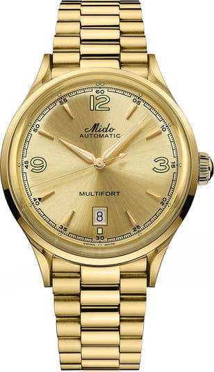A sunray dial enriches this accurate Swiss-automatic watch styled with slender markers and a date window to achieve a retro look. It boasts an 80-hour power reserve and a skeletal caseback, while a brushed bracelet makes it sturdy and classic.