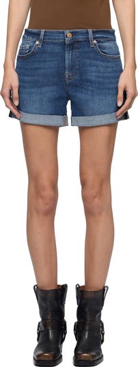Rolled cuffs refine the look of these weekend-ready shorts made from cotton-blend denim with a hint of stretch for comfort.