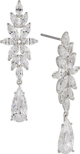 A floral-inspired arrangement blooms atop these light-catching drop earrings anchored with pear-cut cubic zirconia.