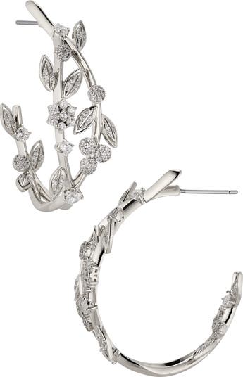 A blooming floral motif sparkles from the inside out of these cubic zirconia-embellished hoop earrings.
