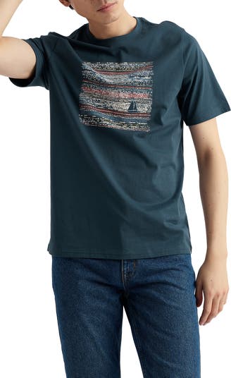 Abstract artwork inspired by life on the coast brightens a T-shirt made with the land-or-sea comfort of soft, breathable organic cotton. Wear it whether you're navigating the waves, staying on dry ground or planning a getaway requiring relaxation that extends all the way to the horizon.