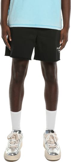A classic logo and rolled, raw hems heighten the sporty aesthetic of soft fleece sweat shorts with an easy drawstring waist.