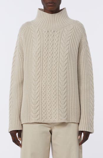 Max Mara's quintessential elegance takes an easygoing turn in this relaxed turtleneck sweater with an exquisitely cabled design knit from cashmere-softened wool.