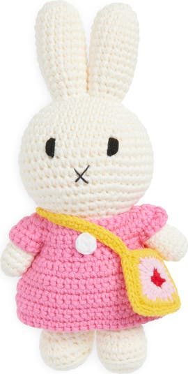 Just Dutch Miffy & Her Pink Dress & Yellow Bag Crocheted Stuffed Animal, Main, color, Pink