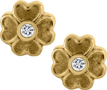 Faceted crystals shimmer and flash on darling earrings crafted from 14-karat gold.