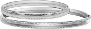 Beaded edges subtly texture gleaming hinged bangles of polished sterling silver that's perfect for mom and her baby girl.