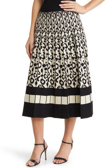 An eye-catching jacquard-knit pattern in crisp black and white emboldens this A-line skirt.