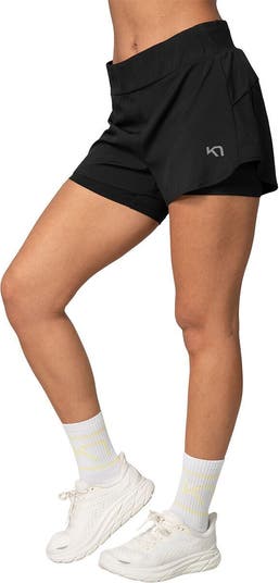 We turn to the Kari Traa Mija Training Short when our workouts call for freedom of movement and a secure, comfortable fit. The lightweight outer short flows easily through strides, squats, and climbs, while the built-in bike short adds supportive coverage that stays put through every rep and every mile. The high-waisted design with an adjustable drawcord lets us fine-tune the fit so the shorts stay right where we want themno distractions, no slip-ups. Made with recycled synthetic materials, the fabric feels breathable and quick-drying, making these shorts perfect for warm-weather training or high-intensity sessions. The handy side pocket provides quick access to a phone or small essentials on the move, and the bold colorblocking makes us stand out whether were hitting the track or weaving through wooded trails. Comfortable, confident, and ready for any workoutthese shorts keep us moving with purpose.