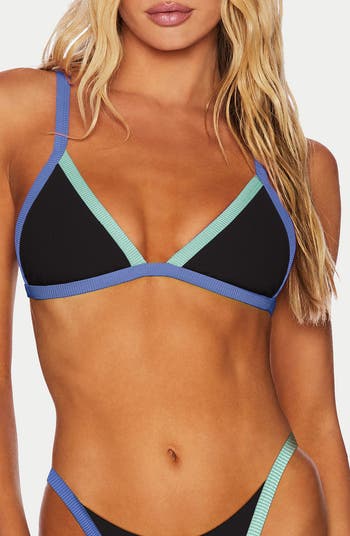 This ribbed bikini top has a colorful contrast trim that gives your look a boho, beachy vibe.