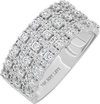 A stunning array of 143 diamonds covers the top curve of this polished wide band handcrafted 18-karat white gold so it catches the light with every move of your hand.