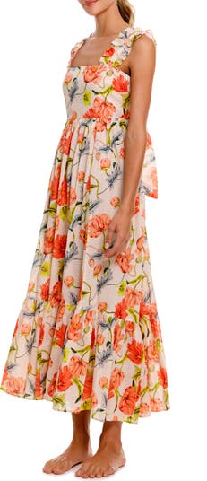 A retro floral print brings dreamy romance to this long, breezy cotton nightgown that's cute enough to wear out of the house with its ruffled, convertible straps and tie back.