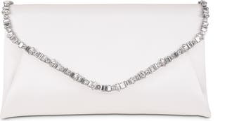 Crafted from luxurious satin, this envelope clutch is the perfect accessory for any special occasion. The mixed crystal embellished trim adds a touch of sparkle, while the inner card pocket keeps your essentials organized.This stunning evening bag offers versatile carrying options. Go hands-free with the detachable 22" drop chain or carry it as a chic hand-held clutch.