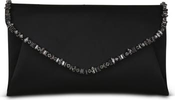 Crafted from luxurious satin, this envelope clutch is the perfect accessory for any special occasion. The mixed crystal embellished trim adds a touch of sparkle, while the inner card pocket keeps your essentials organized.This stunning evening bag offers versatile carrying options. Go hands-free with the detachable 22" drop chain or carry it as a chic hand-held clutch.