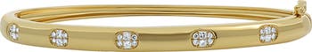 Stations of clustered diamonds bring spectacular shine to this polished bangle handcrafted from 18-karat gold.