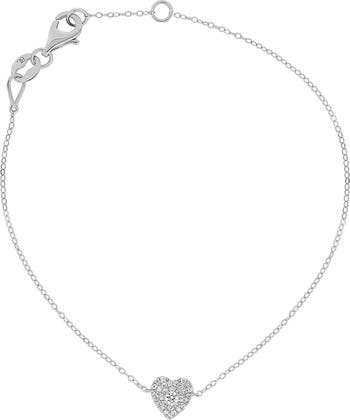Sparkling pavé diamonds enhance the romance of this handcrafted heart charm bracelet forged from icy 18-karat white gold.
