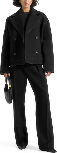 A contemporary take on classic outerwear, this jacket is defined by its tailored double-breasted shape that creates a structured silhouette. Contrast stitching adds subtle definition and visual depth, while marble feature buttons provide a polished accent. Finished with angled functional pockets for everyday practicality, it strikes the perfect balance between structure and elevated detailing.