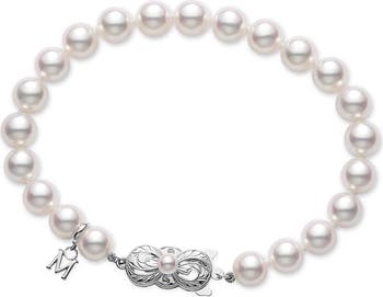 Behold the sea's natural beauty with this bracelet of luminous cultured pearls, which are each carefully selected to ensure the best quality. An ornate white-gold clasp and small logo charm enhance its timeless elegance.