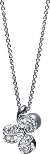 Anchored with a single luminous South Sea cultured pearl, this luxurious 18-karat white-gold necklace has a whimsical clover motif dusted with pavé diamonds.