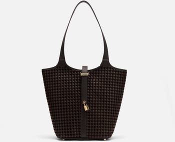 Mila carries the essence of artisanal luxury—leather paired with a signature gold-toned padlock that hints at a private, refined world. It honors the beauty of texture and form while remaining perfectly practical, featuring a spacious interior and long, slender straps designed to transition seamlessly from a busy morning to an elegant evening. Woven Calfskin Leather 8.3" L × 15.4" W × 11.8" H Polished gold-toned hardware and padlock detail Spacious main compartment for daily essentials Slim, reinforced shoulder straps for comfort Protective metal feet at the base Interior slip and zipper pockets for organization