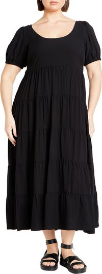 Easy everyday sophistication is the name of the game with this tiered maxi dress fashioned with a smocked back to ensure a custom fit.