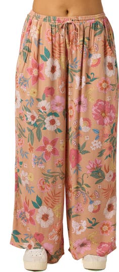 Crinkly, lightweight fabric adds to the beachy vibe of these wide-leg pants topped with a drawstring for an extracomfy fit.