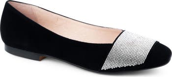 A gorgeous ribbon of crystals drapes the toe of this suede ballet flat.