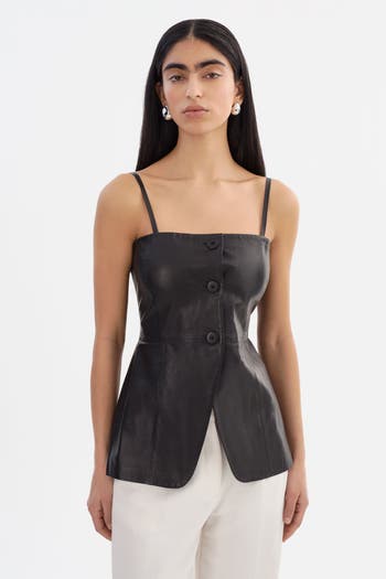 - Lightweight leather fitted button-down bustier top