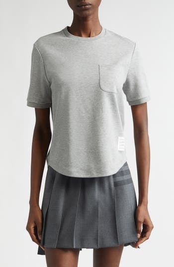 Thom Browne's school-inspired name tag plays up the preppy spirit of this trim Milano-knit cotton pocket T-shirt complete with a signature tricolor loop tab at the nape.