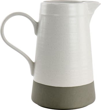 The Gibson Milbrook 60oz serving pitcher has a charming and earthy look that will add a modern farmhouse style to your table. Use this pitcher to serve guests at small gatherings or as an every day household staple for your favorite beverages! Durable stoneware construction is long lasting and dishwasher safe for easy clean up. Textured body and curved handle add a simple yet elegant style to this piece.