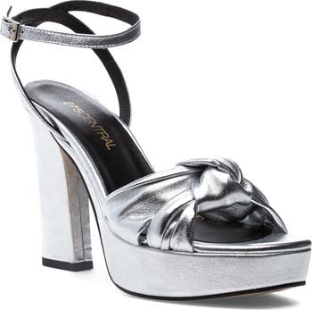 A voluminous knot adds striking dimension to an occasion-ready sandal shaped from lustrous metallic leather and lofted by a chunky platform and sculptural block heel.