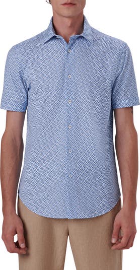 An abstract print neatly patterns a shirt made of breathable, eight-way-stretch OoohCotton that resists wrinkles to keep you polished and comfortable. The double-mercerized fabric dries quickly for moisture-managing softness.