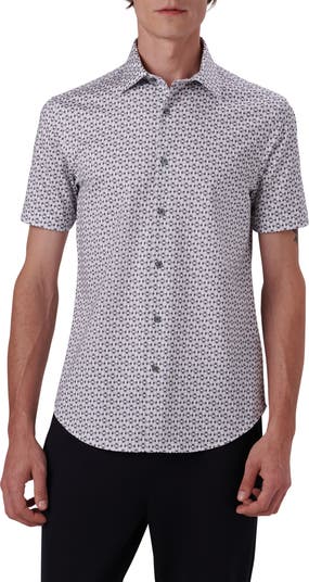 A pale geometric print smartly patterns a warm-weather shirt tailored from breathable, wrinkle-resistant OoohCotton with a smartly pointed collar and a hem that looks great when you leave it untucked. The smooth, double-mercerized knit fabric dries quickly for moisture-managing softness and consistent body temperature.