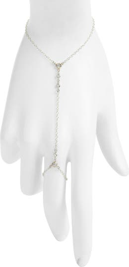 Bezel-set round cubic zirconia dial up the dazzle of a boho hand chain that makes a statement whether worn solo or styled with a stack.