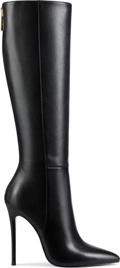 The Miliano Boot is a timeless winter essential featuring a sleek pointed toe and striking slim stiletto heel. This handmade LA-designed boot combines vegan upper materials with a durable leather and rubber outsole for year-round wear. The convenient side zip closure ensures effortless on-and-off access, while the below-the-knee silhouette creates an elongated, flattering leg line. With its 4.75" self-covered heel and sophisticated aesthetic, the Miliano delivers red-carpet-ready style — as worn by Meg the Stallion. Perfect for elevating any outfit from casual to formal