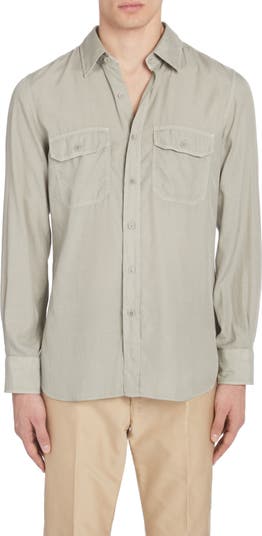 Tom Ford taps utilitarian codes on this button-up shirt tailored in a layering-friendly fit from fluid, lightweight twill in a neutral hue.