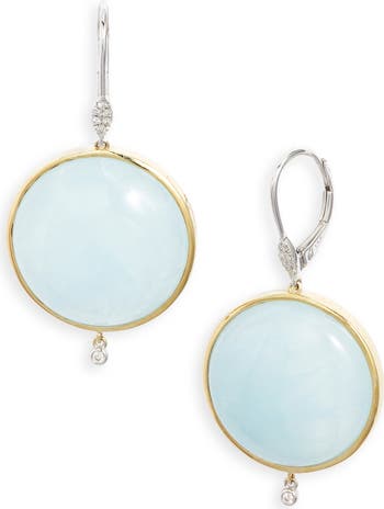 Dreamy aquamarine brings oceanic color to these shapely drop earrings lit up with winking pavé and bezel-set diamonds.