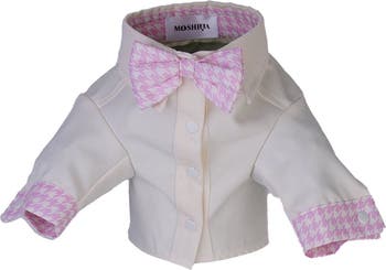 Moshiqa proudly introduces the most dazzling Pet Shirt Collection ever; a fusion of style and comfort for your beloved furry companions. Immerse your precious in a palette of elevated pastel shades, including the refreshing hues of soft pink, serene blue, and more...|Each shirt in this delightful collection features not only these eye-soothing colors but also comes adorned with charming bow ties, imparting a touch of sophistication to your pet's wardrobe. The exquisite craftsmanship shows itself on the collars and cuffs, that made the shirts look bespokely designed. The addition of the graffiti-inspired Moshiqa logo on the back introduces an element of playfulness and modernity making these elevated shirts a standout fashion choice for your furry friend.|This thoughtful combination ensures durability and ease of use while providing the ultimate comfort that your pet deserves. Whether they're enjoying a leisurely day or joining you at an event, the luxurious Moshiqa shirts promise to be a delightful style addition to their wardrobe. Beyond just pet clothing, these new style staple pet shirts are the symbol of pet luxury.|The cutest Cotton Candy, striped classic Mintiees, bold Splash Berry, pinky Le Messa, sunbeam Tee Buddy, dreamy Milky, dolled up Ken, and collage chic Bruno… Choose your styles and instantly highlight your precious’ cuteness. Make the furry trendsetter of the neighborhood with Moshiqa's irresistibly appealing Shirt Collection, because every pet deserves to look as charming as they feel!
