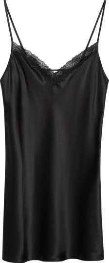 Delicate scalloped lace trims this satiny washable-silk camisole fitted with slinky adjustable straps.