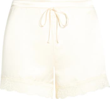 Lounge in luxury thanks to these pajama shorts that are the ultimate in delicate romance thanks to their natural silk fabrication—known for its exceptional thermal properties—and floral-lace trim.