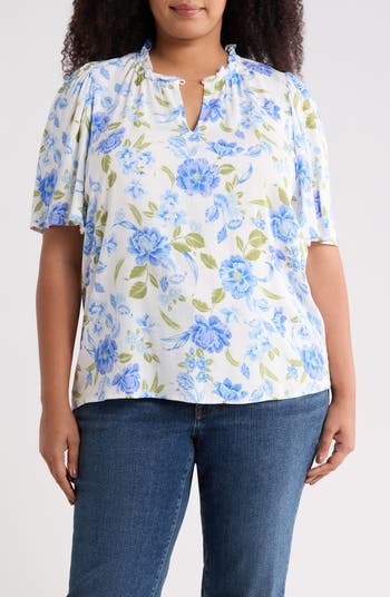 Add a refreshing twist to your casual style with this ruffle-trimmed woven shirt in an airy floral print.
