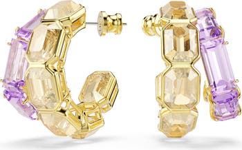 Add a beautiful mix of color to your look with the sparkling earrings featuring an eye-catching design of asymmetric double hoops.