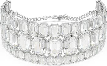 Bring signature Swarovski opulence to your ensemble with this captivating choker that features three rows of mixed-scale crystals that reflect light with every twist.