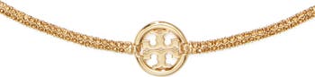 Sparkling pavé crystals trace an elegant collar necklace fashioned with gleaming double-T logo medallions for signature shine.