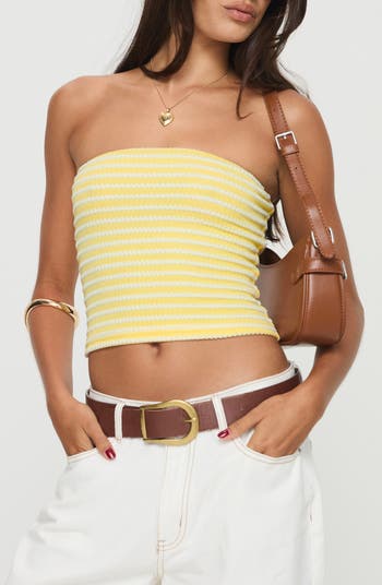 Playful textured stripes refresh a cropped tube top cut from a comfortable and stretchy knit.