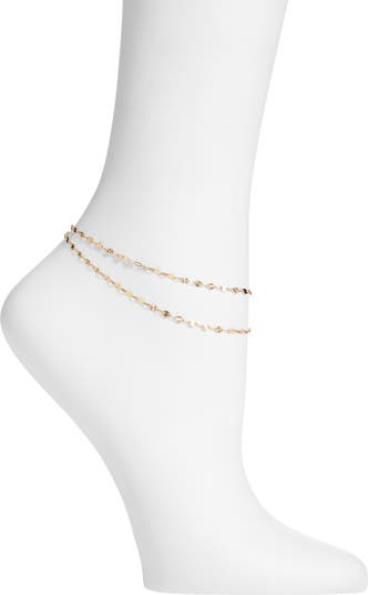 Finish off your OOTD with this handcrafted anklet comprised of layered chains of airy and etched links.