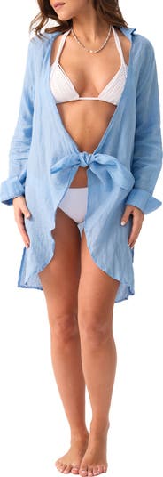 Stay cool and comfortable as you go form the beach to a seaside lunch in this lightweight linen cover-up with ties at the front.